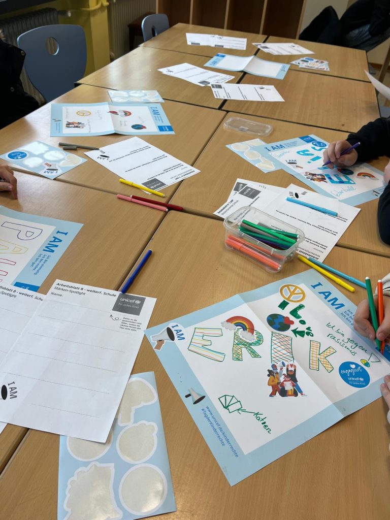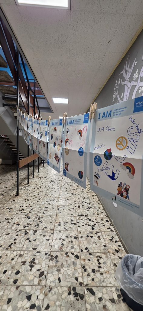 Anlässlich des Internationalen Tages der Kinderrechte, der jedes Jahr am 20. November stattfindet, führten wir an der SSG die bundesweite UNICEF-Schulaktion „I AM“ durch. Dabei ging es darum, ein Zeichen für Kinderrechte, Selbstvertrauen und Zukunftsmut zu setzen.