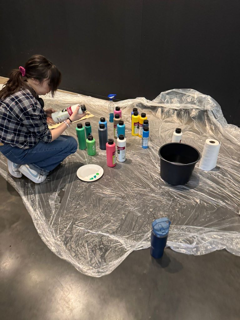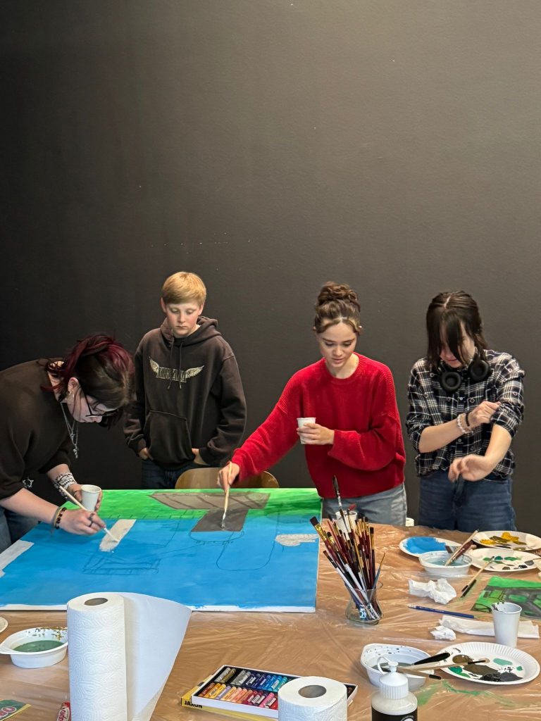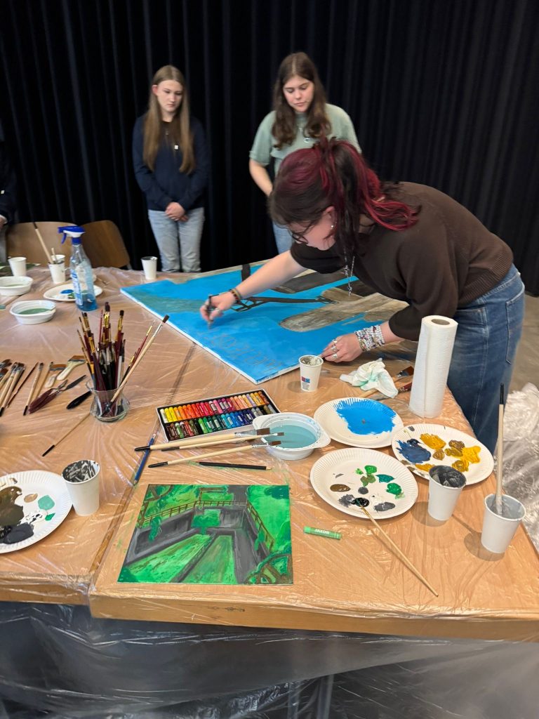 Für die SSG bot Jennifer Patti den Workshop „Rost und Kunst“ an. Die Teilnehmenden des Workshops brachten flüssiges Eisen als Malmittel mit verschiedenen Techniken auf die Leinwand und ließen es anschließend rosten.